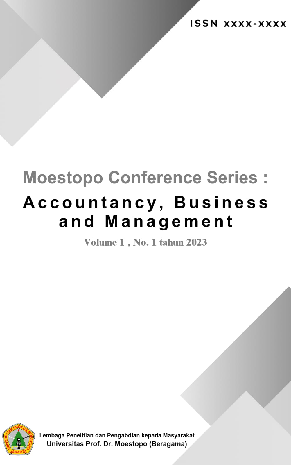 Moestopo Conference Series: Accountancy, Business and Management merupakan media publikasi hasil-hasil penelitian dan pengabdian masyarakat dalam bidang ilmu Akuntansi, Bisnis dan Manajemen yang telah dipresentasikan pada Seminar Nasional Moestopo Conference Series yang diselenggarakan oleh Lembaga Penelitian dan Pengabdian Kepada Masyarakat Universitas Prof. Dr. Moestopo (Beragama). MCSABM ini dipublikasikan pertama pada tahun 2023 yang di kelola dan di publikasikan oleh LPPM Universitas Prof. Dr. Moestopo (Beragama). Semua artikel diperiksa plagiasinya dengan perangkat lunak turnitin. Jurnal ini terindeks di Google Scholar, terbit setiap Maret dan September.